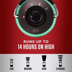 The 1000 Lumens LED Lantern with BatteryGuard™ stops battery drain so you have power when you need it most. Conventional lanterns experience residual power drain as long as batteries are connected to the circuit. With BatteryGuard, batteries are automatically disengaged from the circuit when the lantern is turned off to extend their life by as much as 25%. It also reduces the chance of damaging corrosion so batteries can be stored in the device for years (up to their inherent shelf life). Additional features include a rotating dial to switch between high, medium, low, and flashing modes, up to 14 hours runtime on high using 4 D batteries (sold separately), water resistance, impact resistance up to 2 meters (on dirt), and lifetime LED bulbs that never need replacing. No matter the situation, this BatteryGuard lantern with a 16-meter beam gives you Power When You Need It™.