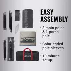 - Sets up in as fast as 10 minutes with 3-pole design and color-coded continuous pole sleeves