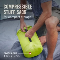- Compressible stuff sack with side straps that can be cinched to compress the bag; compact size packs up smaller than traditional Coleman® sleeping bags (9.4 x 9 x 15.7 in.)