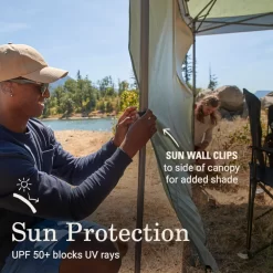 - SUN PROTECTION: Sun wall clips to side of canopy for additional shade and wind protection; vented roof releases trapped heat so you stay cool; UPF 50+ blocks the sun’s harmful UV rays