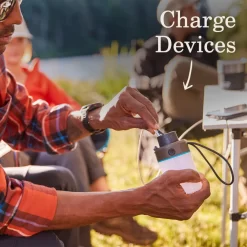 - CHARGE DEVICES: Charge your phone or other devices off the battery while it’s plugged into the camping lantern