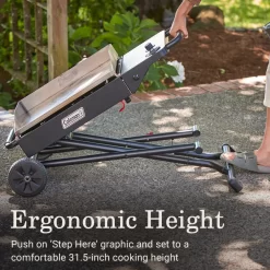 - ERGONOMIC HEIGHT: Pushing on ‘Step Here’ graphic snaps it to a comfortable 31.5 inch cooking height