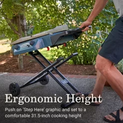 - ERGONOMIC HEIGHT: Pushing on ‘Step Here’ graphic snaps it to a comfortable 31.5 inch cooking height